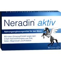 Das Nahrungsergänzungsmittel Neradin® aktiv ist speziell auf die Gesundheitsbedürfnisse von Männern abgestimmt. Enthält roten Ginseng-Extrakt, Zink, Selen, Magnesium sowie Folsäure. Die nützlichen Mineralstoffe unterstützen die Vitalität des Mannes, so trägt Zink z. B. zur Aufrechterhaltung eines normalen Testosteronspiegels bei.